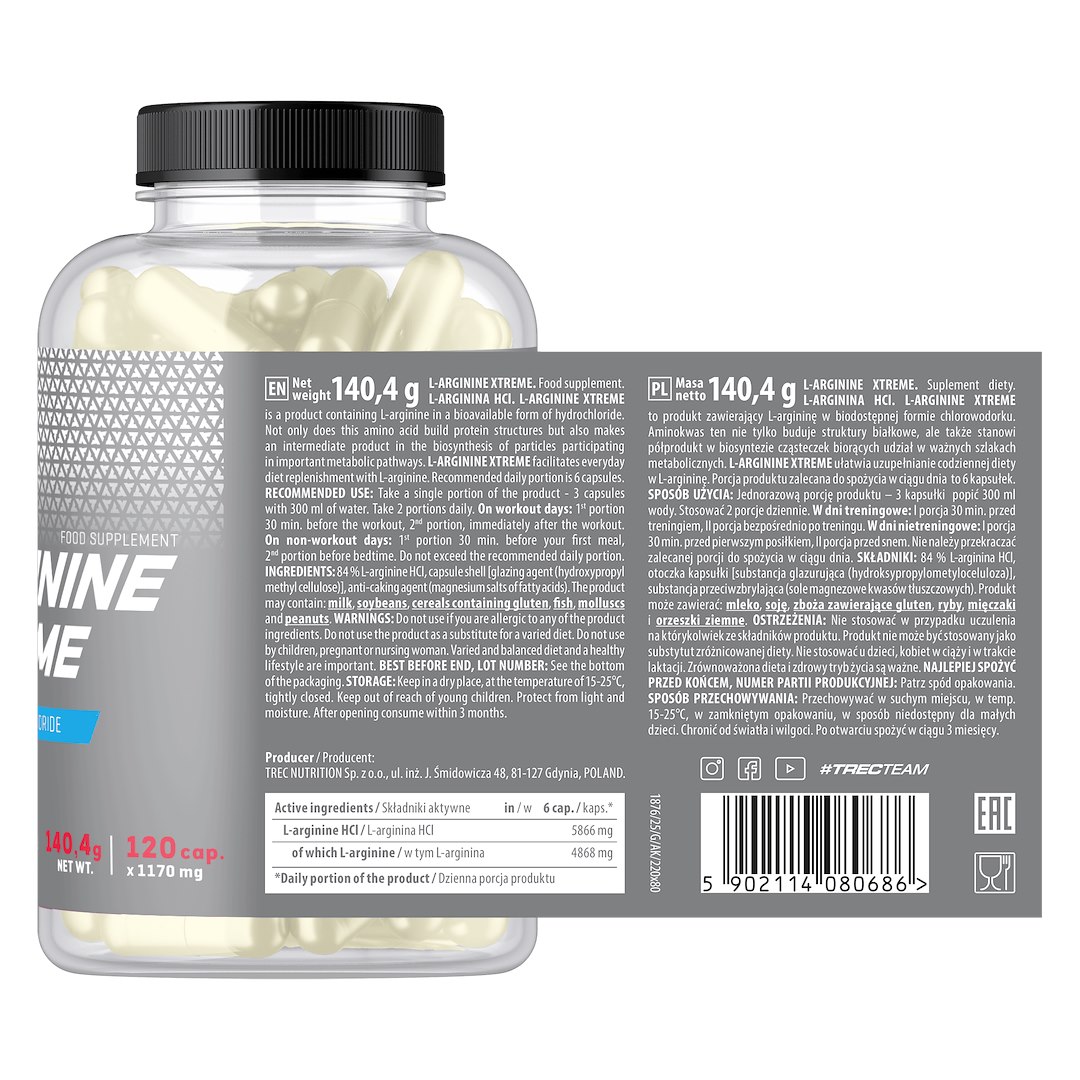 Trec L-Arginine Xtreme — це преміальна добавка на основі високоякісного L-аргініну гідрохлориду, яка забезпечує потужний ефект розширення судин та підсилює синтез оксиду азоту (NO).
